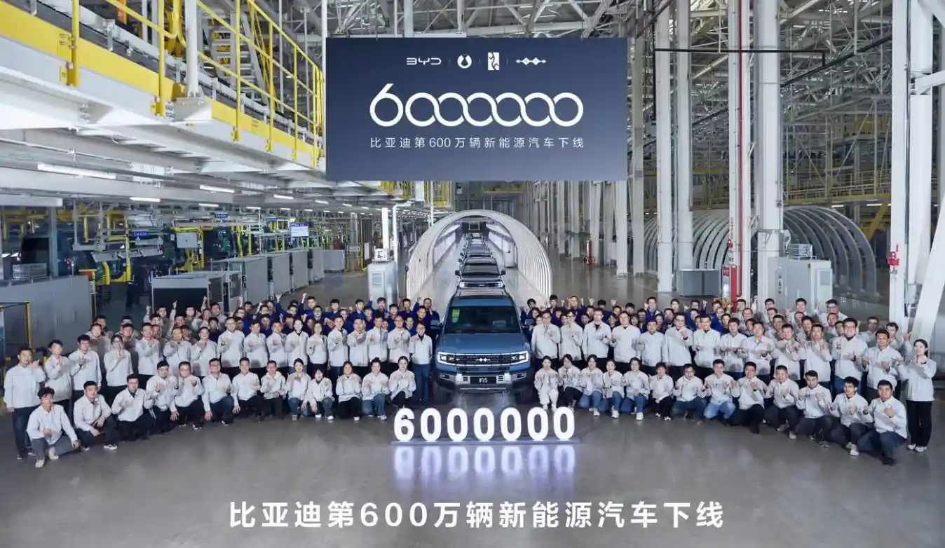 比亚迪BYD今日官宣,第 600 万辆新能源汽车下线,是全球首个达成这一里程碑的车企。