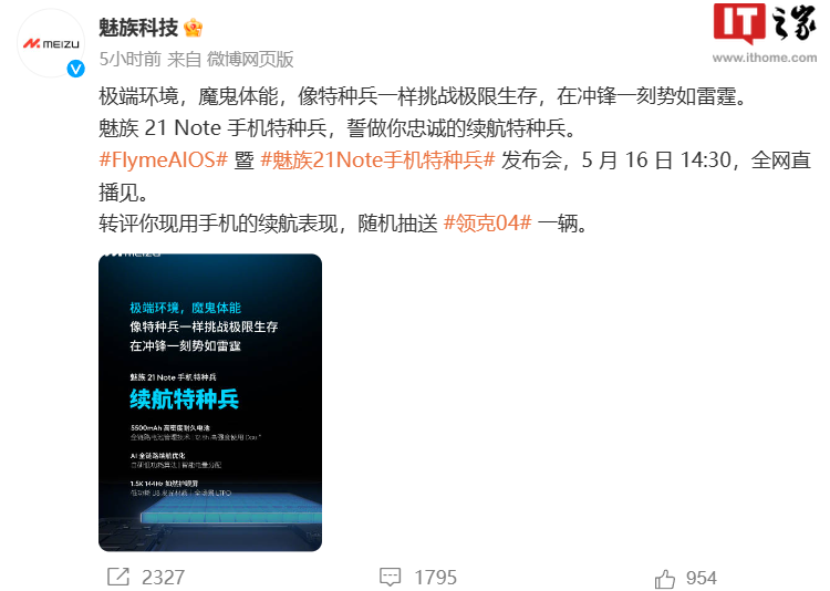 IT之家整理魅族 21 Note 手机官方信息如下:
