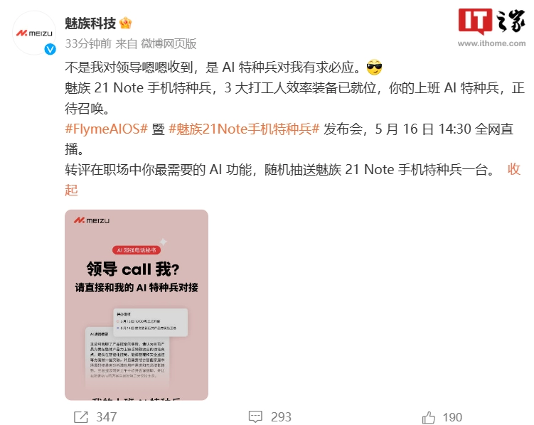 IT之家 5 月 13 日消息,魅族官方今日公布了魅族 21 Note 手机 AI 通话功能,支持笔记记录和全局录音。