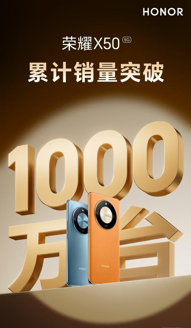 据IT之家此前报道,荣耀终端有限公司中国区 CMO 姜海荣 5 月 10 日宣布,荣耀 X50 推出至今历经 10 个月,在中国市场的销量已成功突破 1000 万,这也是 2023 年以来发布产品中第一款中国市场销量突破千万的安卓单品。