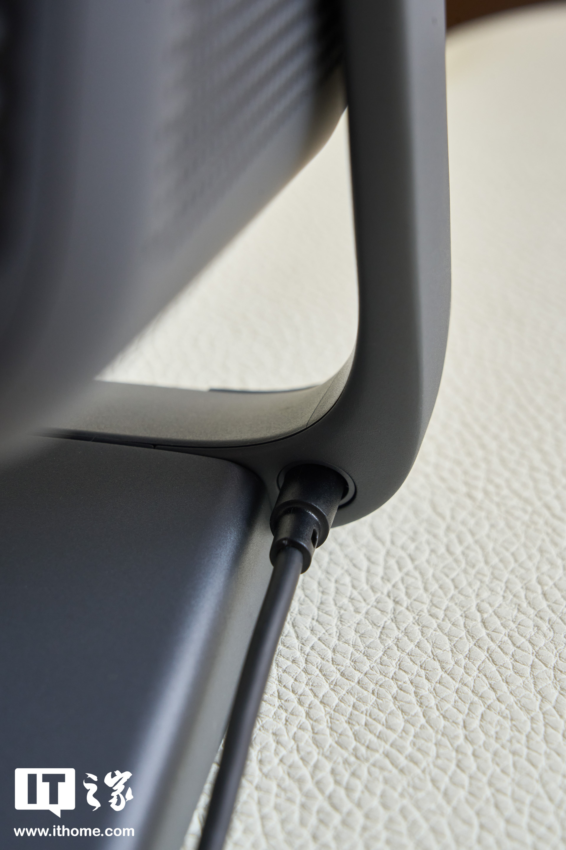接口部分,包括 HDMI 2.1*2,USB*1,3.5mm 耳机口。电源键被设计在了底部的支架中央位置。DC 充电口则放在了底部支架的一侧。
