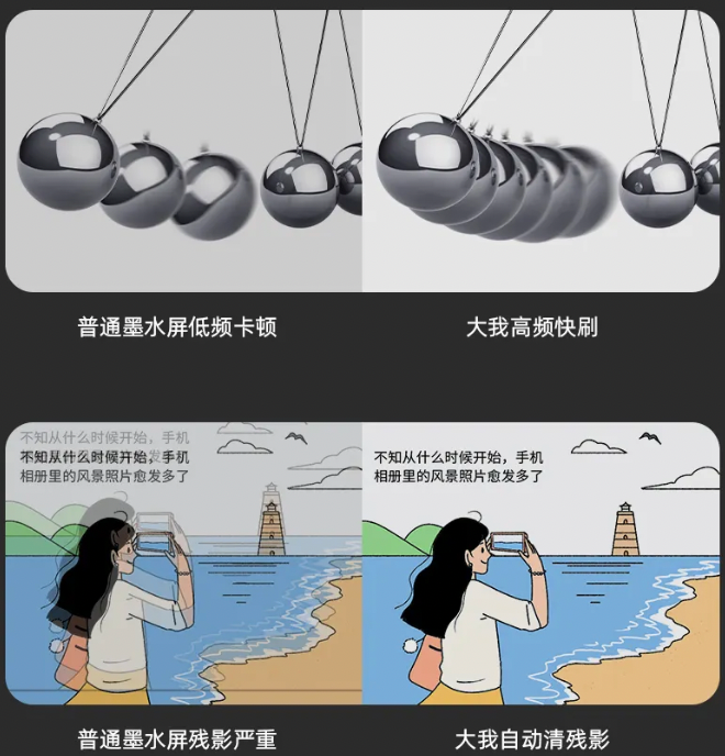 HiBreak 将搭载大我自研快刷算法及自动清除残影专利技术,官方效果演示如下: