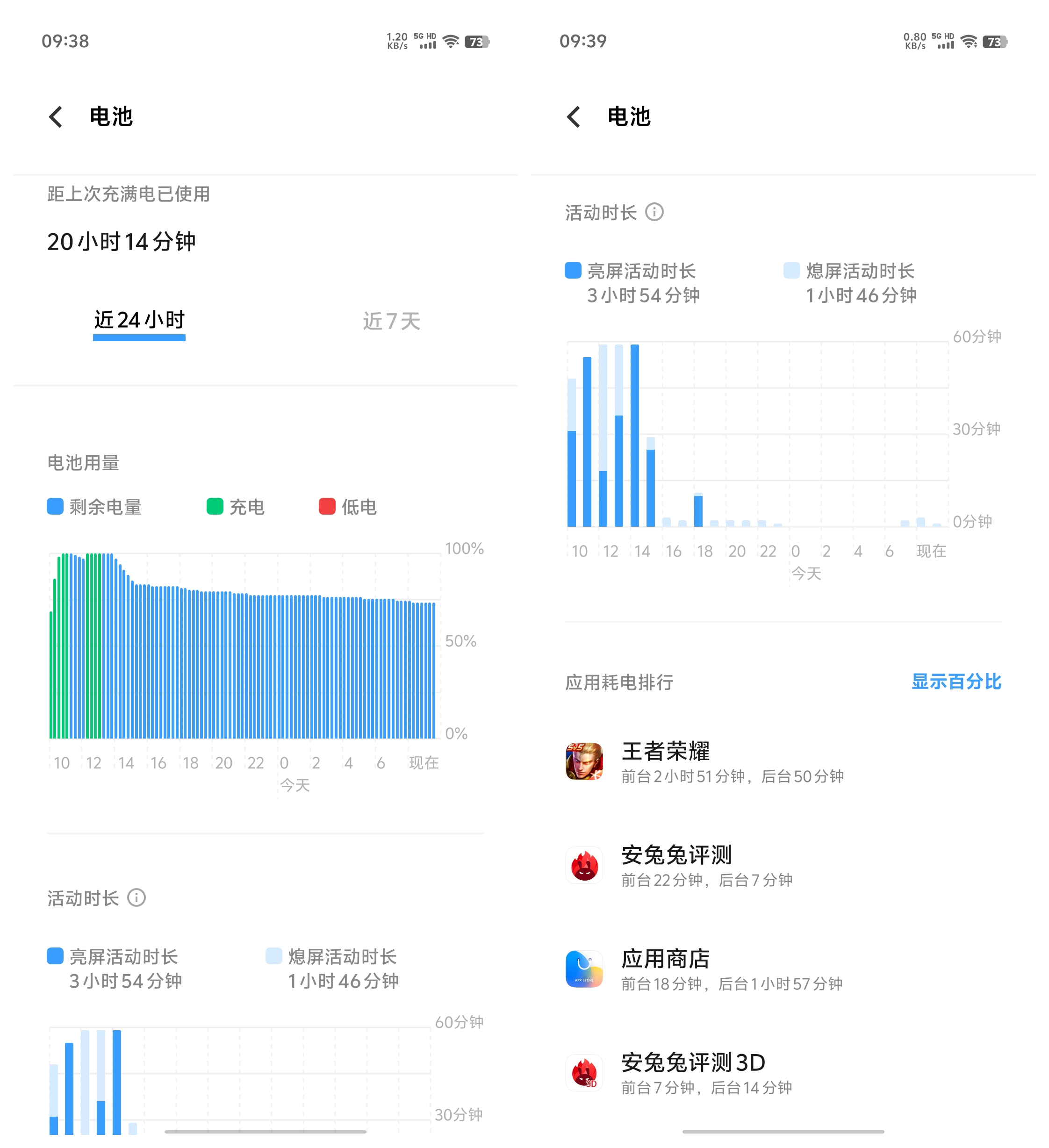 就以最高画质的《王者荣耀》为例,从 100% 电量开始测试,在线 5v5 游戏一个小时,竟然耗电为 5%,前期 100% 的电量相当耐用。