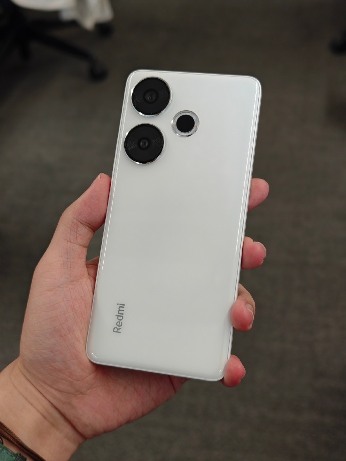 小米 Redmi 手机市场经理张宇放出了该手机真机实拍图,并配文“白色中框 + 白色电池盖的 Turbo 3”。