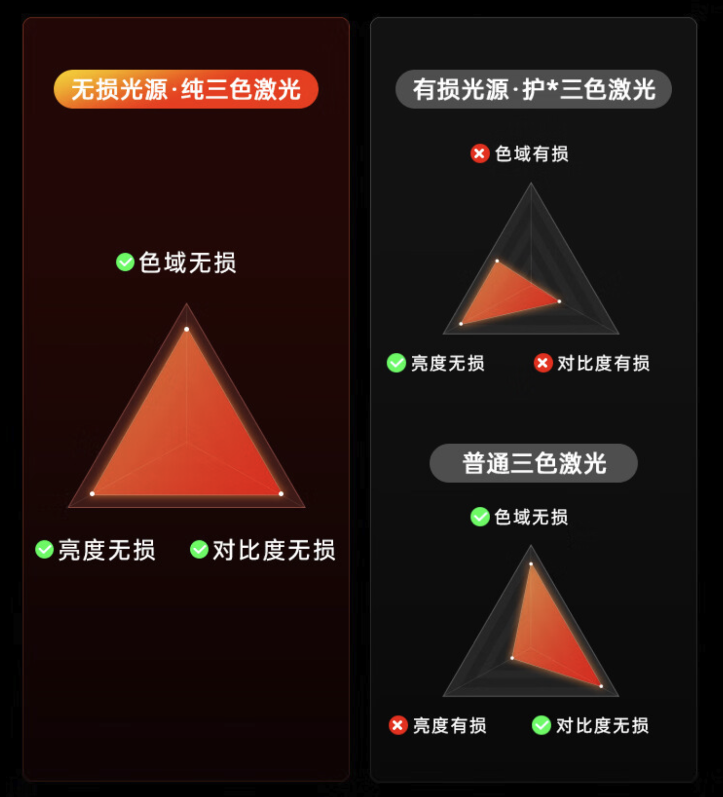 坚持纯三色激光的一个核心原因,纯三色激光不混入任何杂光。