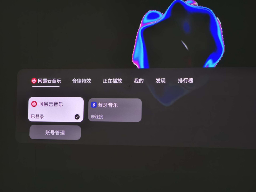 必须要点赞的是,Bonfire OS 还接入了网易云音乐等第三方平台,扫码登录即可在投影仪上畅听第三方音乐。
