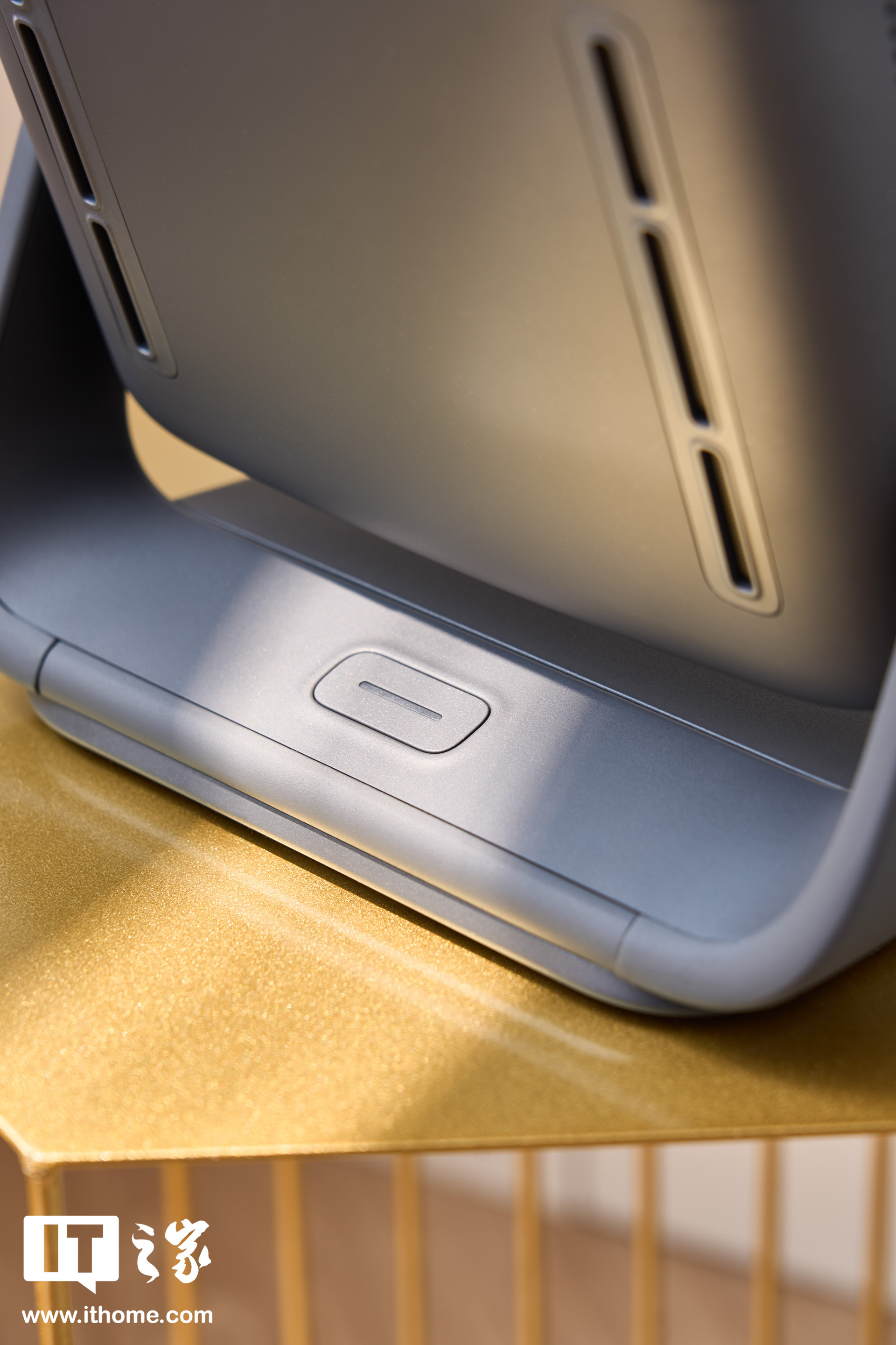 坚果 N1S Ultra 4K 至臻版电源键被设计在了底部的支架中央位置。DC 充电口则放在了底部支架的一侧。