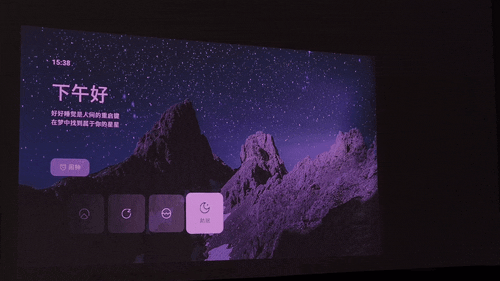坚果 N1S Ultra 4K 至臻版的 Bonfire OS 7.0 系统也做出了自己的特色,首页模拟日光一天的颜色与位置变化,这是一个性化的自然动态桌面,并且随时间而变化。