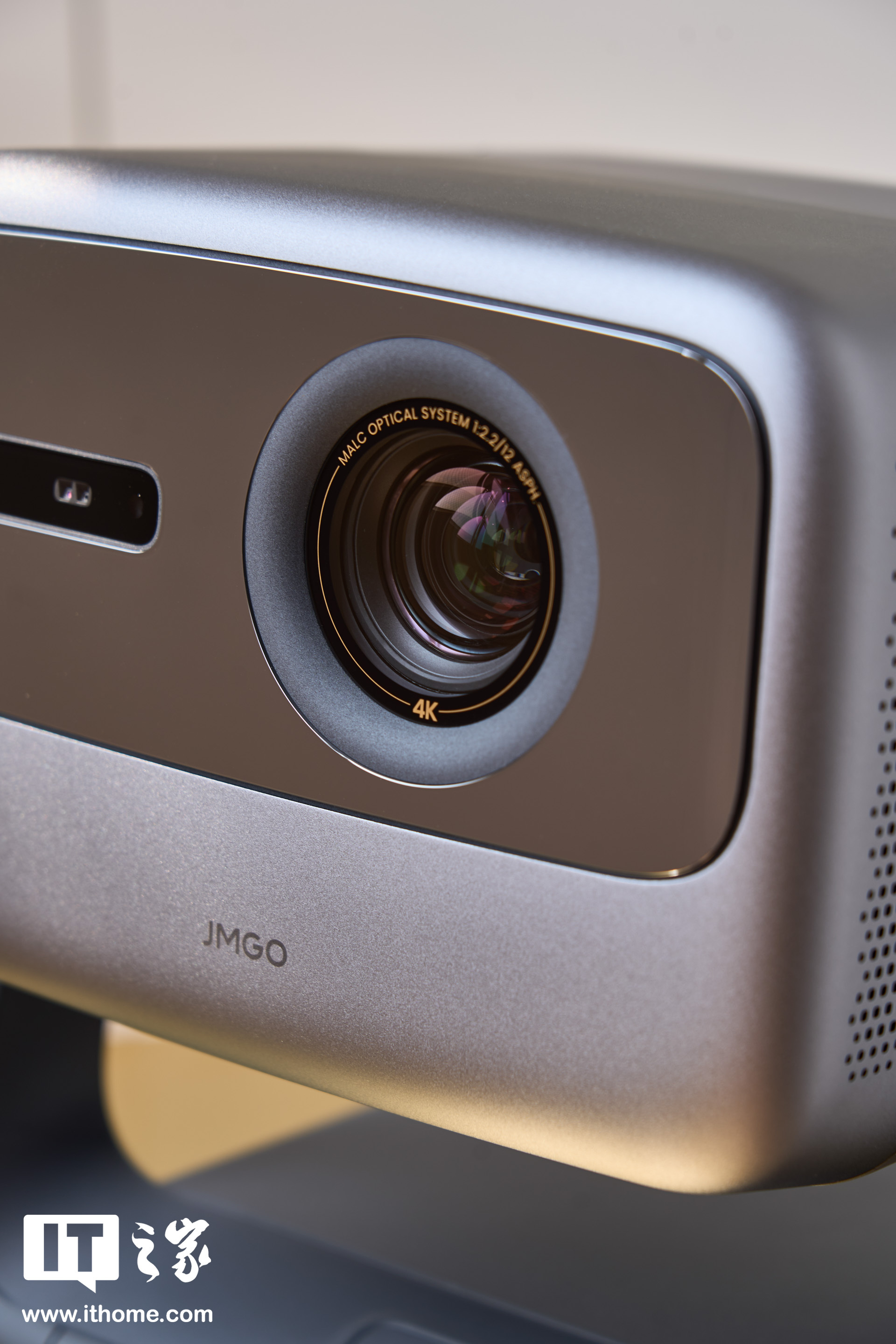 深邃的投影镜头像只“大眼萌”,投影镜头区域采用了黑色高亮设计,这也是与 N1S Ultra 4K 在设计上的不同,后者该区域采用了深黑色磨砂设计。