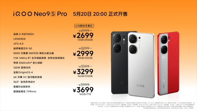 iQOO Neo9S Pro 今晚 20:00 正式开售,IT之家附 618 限时优惠售价如下: