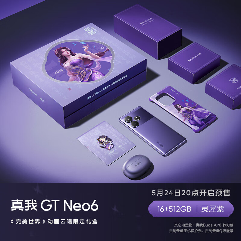 文章来源于互联网:IT之家-真我 GT Neo6《完美世界》云曦限定礼盒价格公布:2799 元,5 月 24 日开售