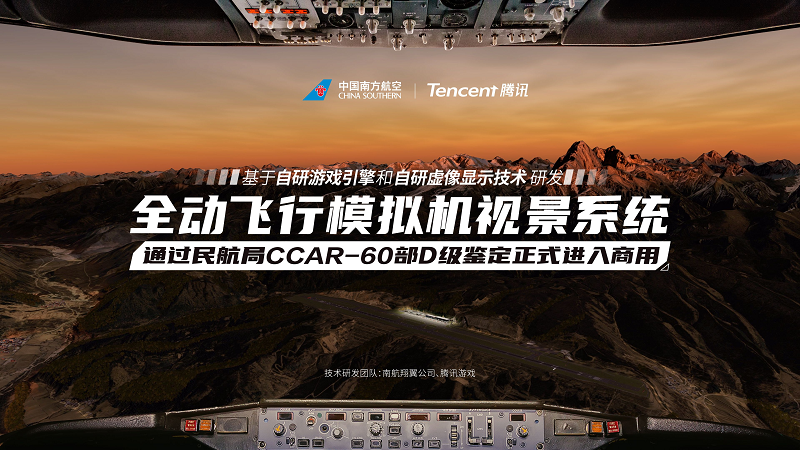 去年年底,基于腾讯自研游戏引擎和南航自研虚像显示技术等技术打造的全动飞行模拟机视景系统,搭载于E190模拟机,已正式通过中国民用航空局CCAR-60部最高等级(D级)鉴定,并于今年1月投入飞行员训练,至今已累积完成超200小时飞行训练时长。