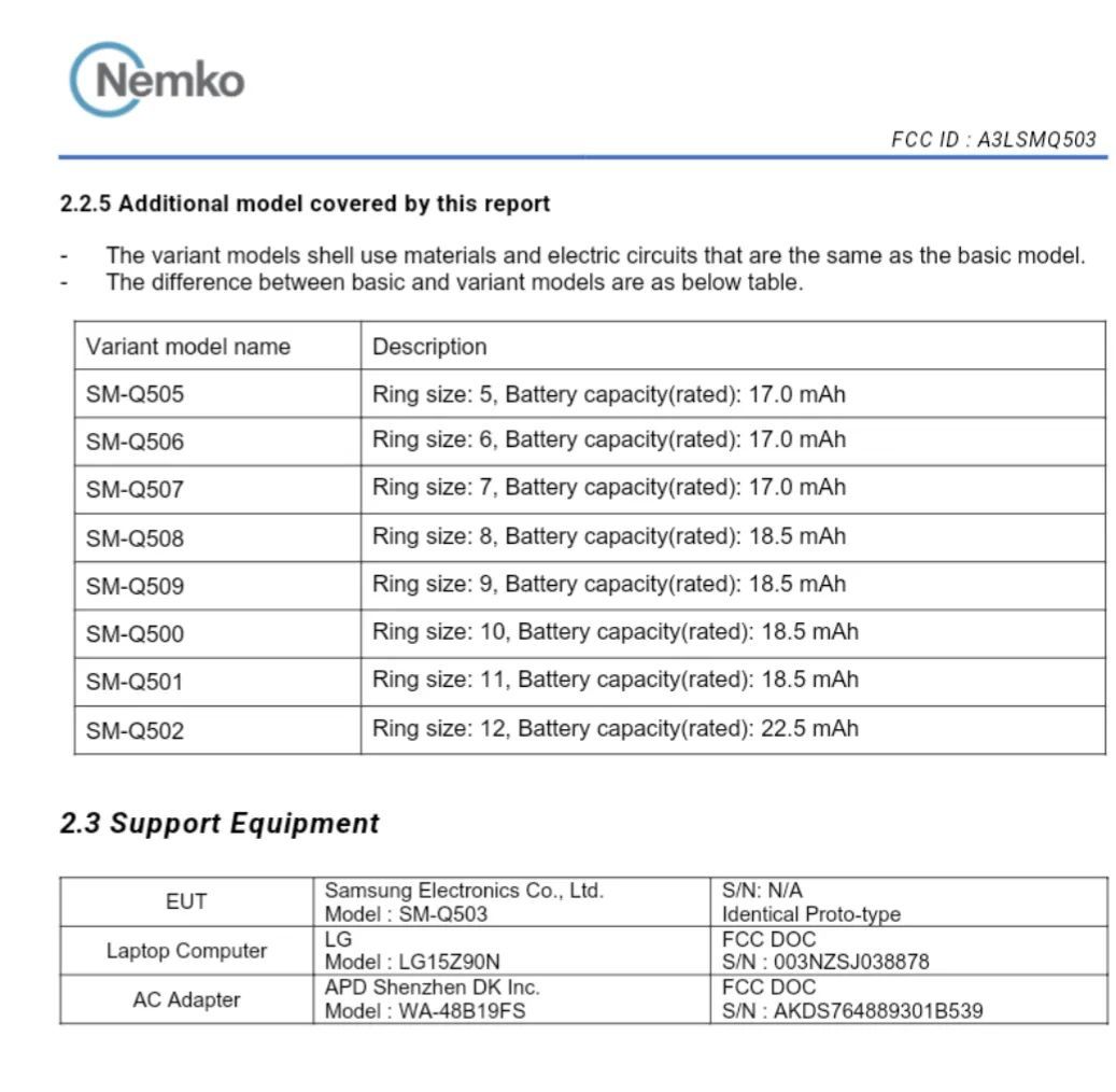 SM-Q507:对应美国戒指尺码 7 号,配备 17mAh 容量电池