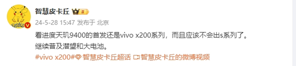 vivo旗下“超大杯机型”X100 Ultra刚刚上市不久,网上关于其下一代产品——vivo X200系列的猜测和爆料已经开始涌现。5月29日,CNMO注意到,据知名数码博主“智慧皮卡丘”透露,vivo X200系列极有可能成为联发科天玑9400的首发机型,并且预计不会推出s系列。vivo X200系列将继续强化潜望式镜头和大容量电池两大特色。