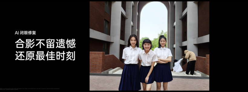 就比如“AI 闭眼修复”功能。在日常合影中,我们经常会遇到这样的尴尬情况:合照里自己状态极佳,但好友却恰巧闭上了眼睛,发朋友圈吧,这行为太“友尽”,当废片吧,又倍感可惜。