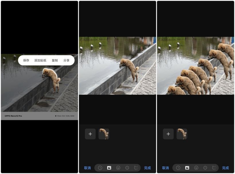 此外,Reno12 系列的 AI 抠图新增了快速添加为贴纸的功能,用户可以轻松在相册内完成合影 P 图、手账制作等任务,既实用又充满趣味。