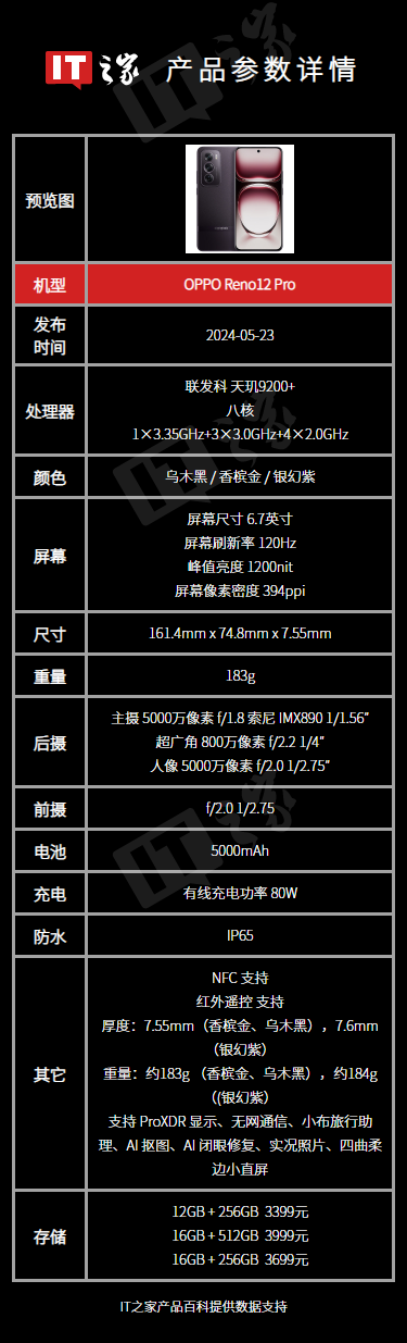 《OPPO Reno12 / Pro 手机发布:采用四曲柔边直屏,售价 2699 元起》