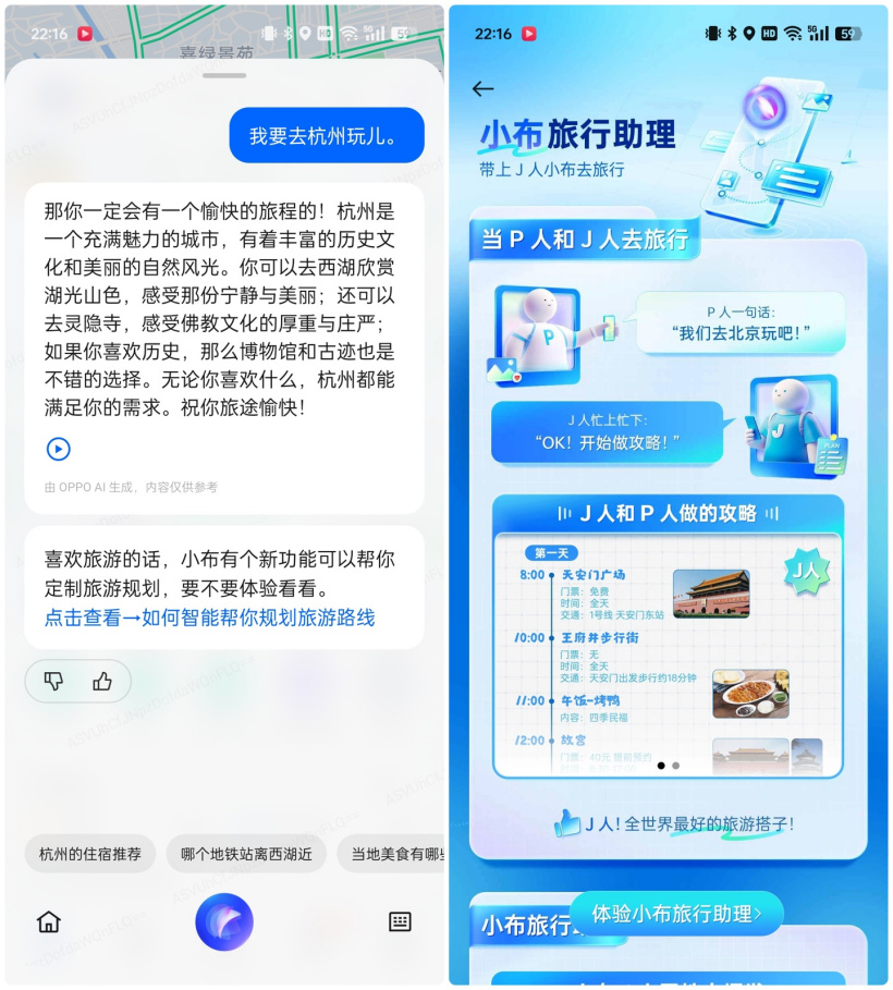 Reno12 系列还带来了小布旅行助理功能,这项功能实在是太棒了,以至于在体验过程中,笔者对产品经理独特视角连连钦佩。