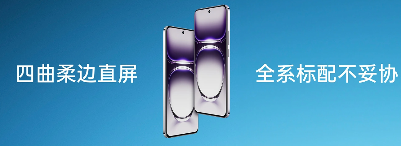 OPPO Reno12 系列是 OPPO 旗下首款运用四曲柔边直屏的机型,号称“这一设计不仅解决了传统曲面屏幕容易误触、畸变和色偏的问题,还为用户提供了鹅卵石般的舒适握持体验”。