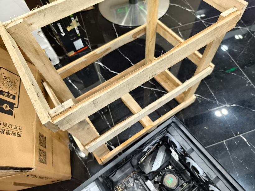机箱内塞入的泡沫垫和泡泡纸根本没包严实,导致厚实的 M.2 散热装甲直接脱落掉在了机箱里面,总之机箱里给人感觉非常得凌乱。