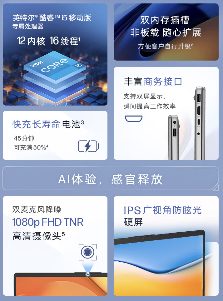 据介绍,这款笔记本厚度 17.9mm,重量 1.36 千克,配备 12 核心 16 线程英特尔酷睿 i5-1340P 处理器,配备“双 RAM 插槽”及 PCIe 硬盘,不过官方没有公布具体信息。