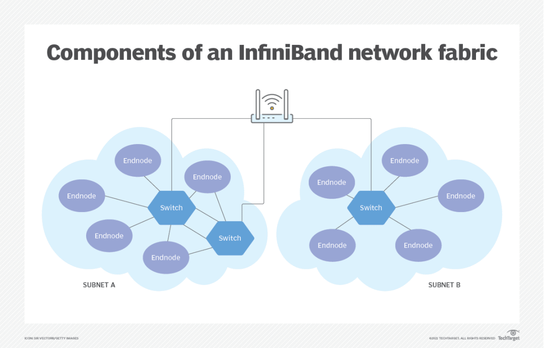 InfiniBand网络由交换机和路由器组成,数据包使用串行方式发送,可以同时发送多个数据通道。