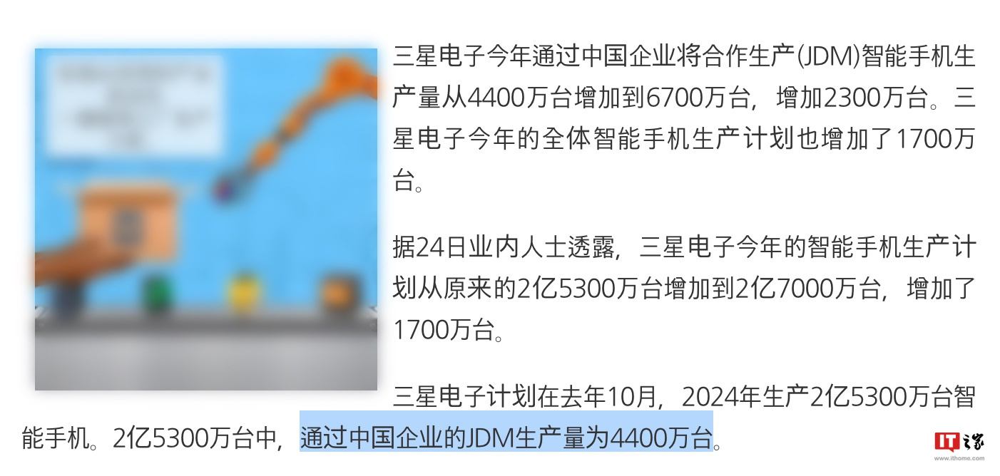 文章来源于互联网:IT之家-消息称三星今年计划在中国大陆生产 6700 万台“JDM 类”手机,占全球制造量 25%