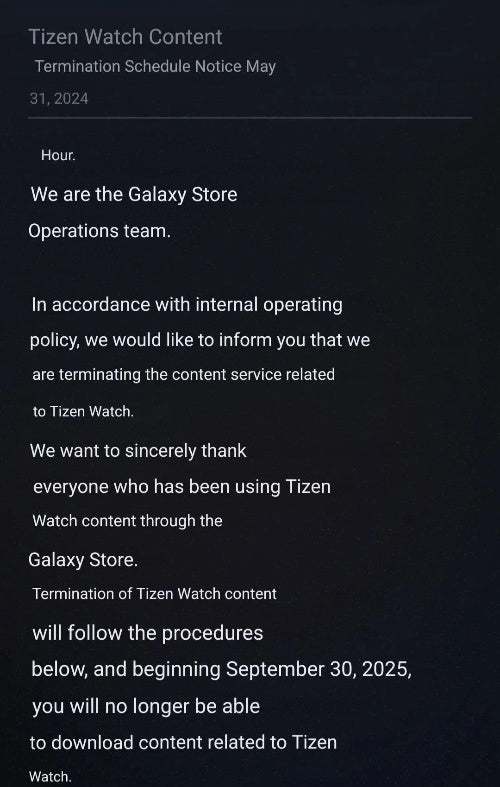 据悉,三星计划在 2024 年 9 月 30 日起停售 Tizen 手表商店付费内容,2025 年 5 月 31 日关闭商店购买服务,2025 年 5 月 31 日正式关停相关商店,用户届时无法下载已经购买的应用程序。