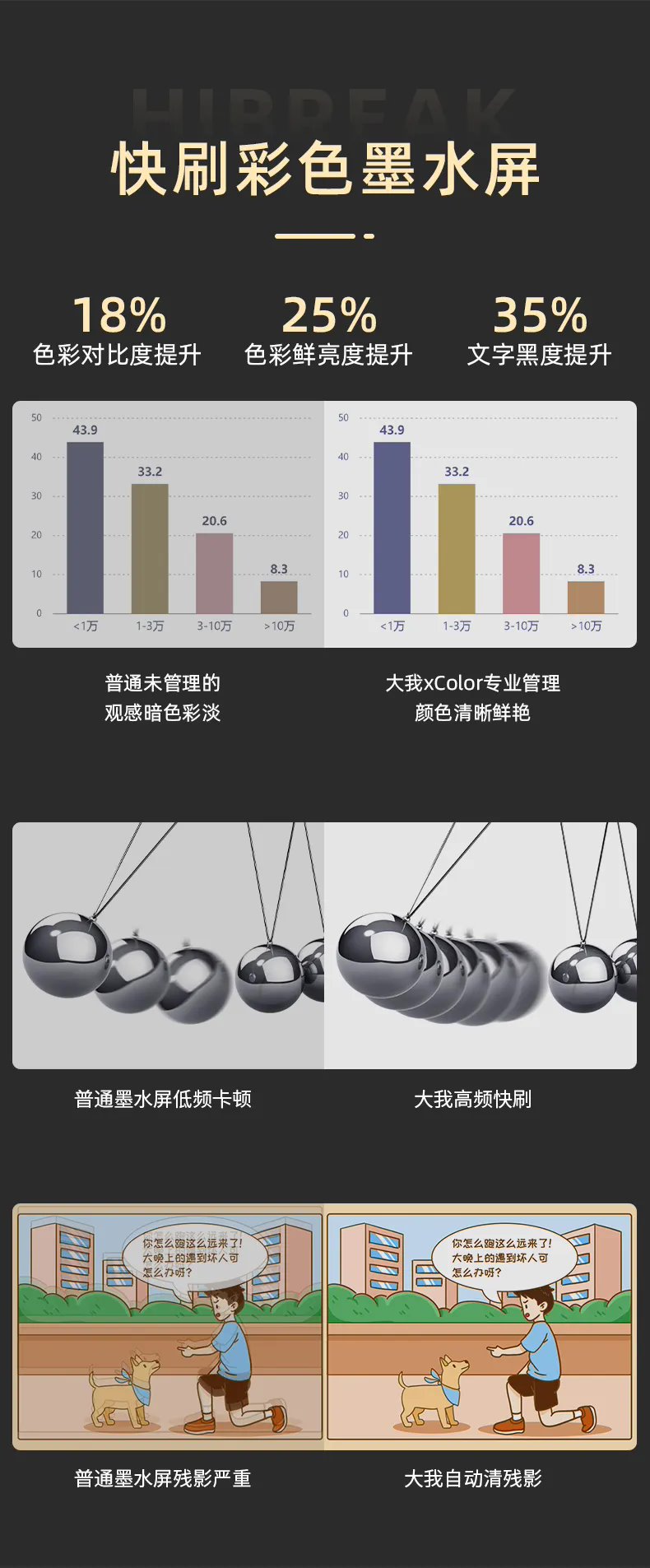 彩色墨水屏版机型内置大我自研 xColor 色彩管理算法,色彩表现有所提升,无蓝光无频闪。