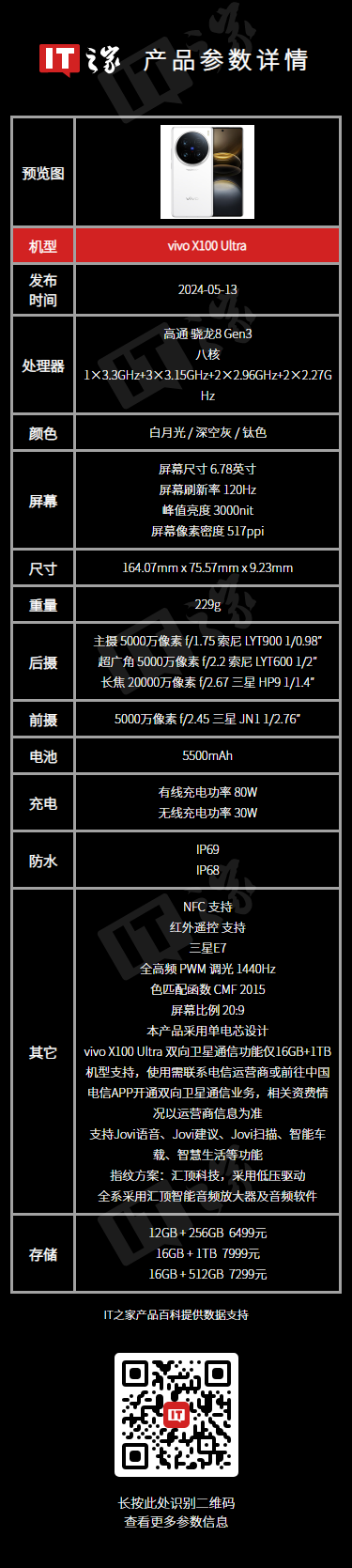 文章来源于互联网:IT之家-6499 元起,vivo X100 Ultra 正式开售:升级蔡司 2 亿 APO 超级长焦、一英寸云台级主摄