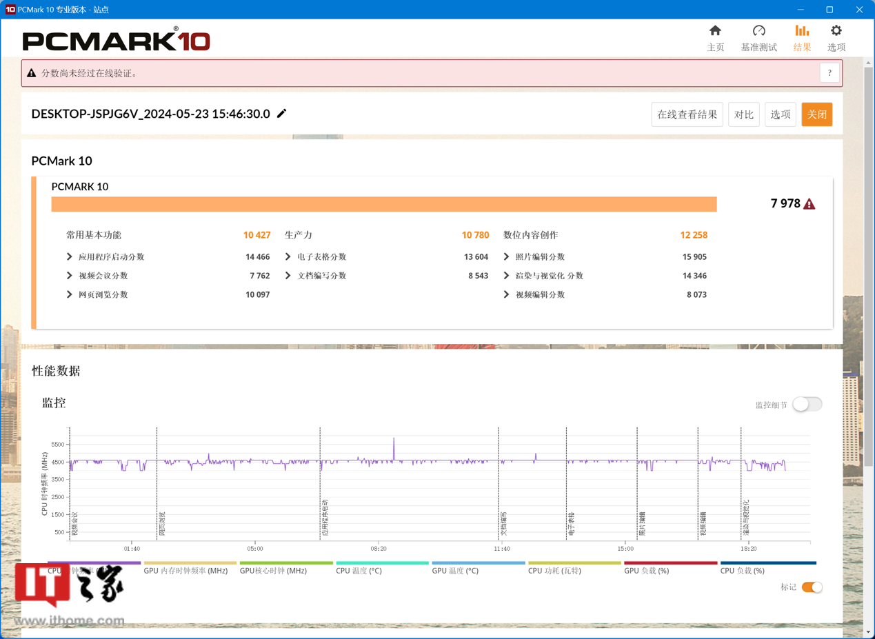 在展现进阶办公性能的 PCMark 10 现代办公基准测试中,结果也比较相似,酷睿 i5-12490F 的分数为 7960 分,R5-7500F 的分数为 7978 分,可以看到在基本办公场景中,两者差别不大,不过对功耗和散热比较敏感的用户来说,酷睿 i5-12490F 可能表现更出色一些。