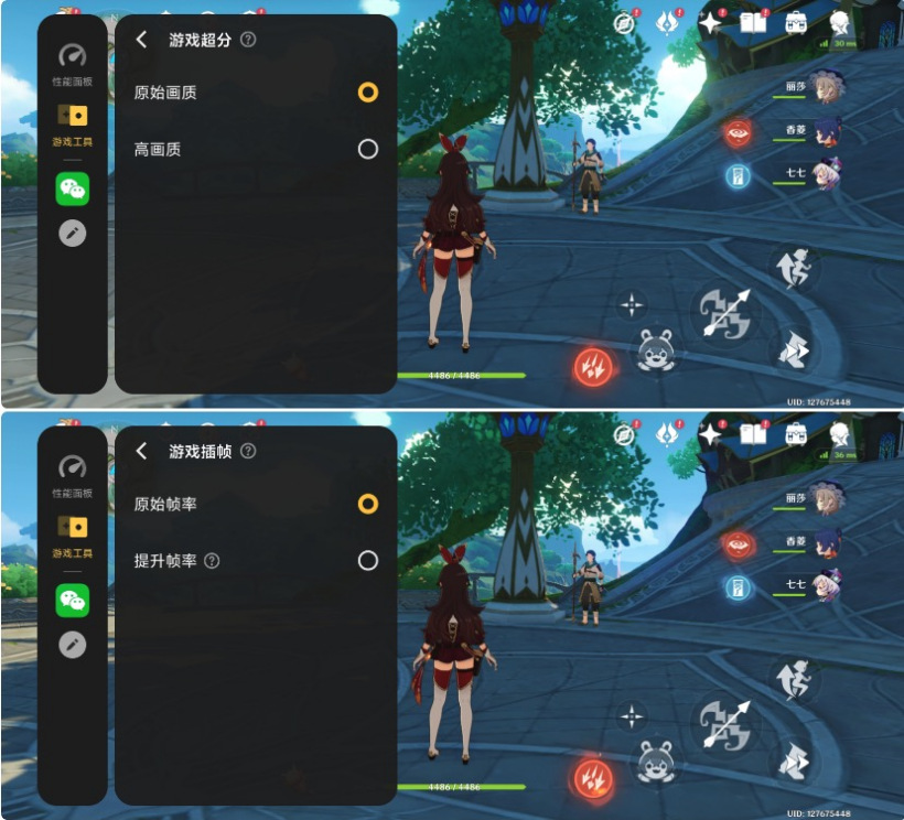 以超分为例,开启后,游戏原生最高画质(1800×810)会超分为“超分高画质”(2000×900),人物边缘、细节,地面的纹理,立马变得更为清晰起来,一些远处的细节,也会从“朦胧模糊”变成了“清晰锐利”。