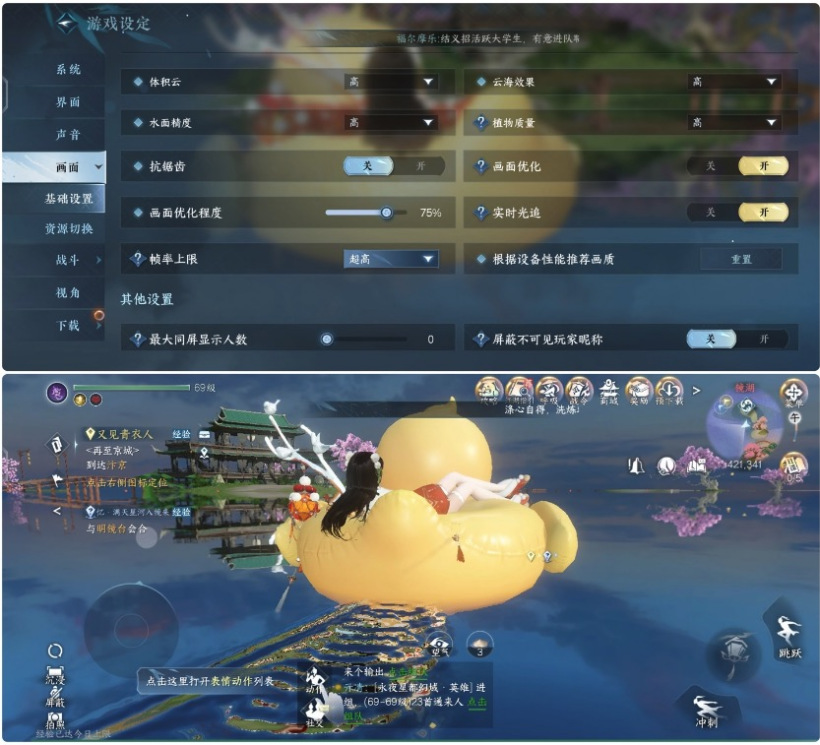除了《原神》,再看人气网游《逆水寒》的运行测试,这也是一款对性能要求非常高的游戏,在高画质下使用 vivo X100 Ultra 进行 10 分钟的镜湖跑图测试。