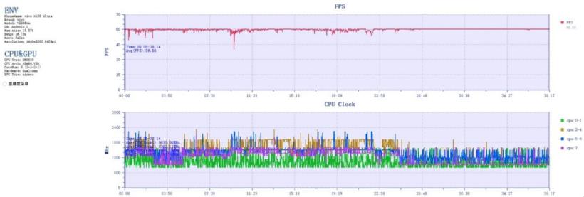对手机性能最极致的考验自然是游戏,在《原神》最高画质 + 60 帧模式下,vivo X100 Ultra 进行 40 分钟须弥城跑图 + 野外挑战打怪,平均帧率可以达到 59.58fps,这样的表现无疑是很坚挺了。