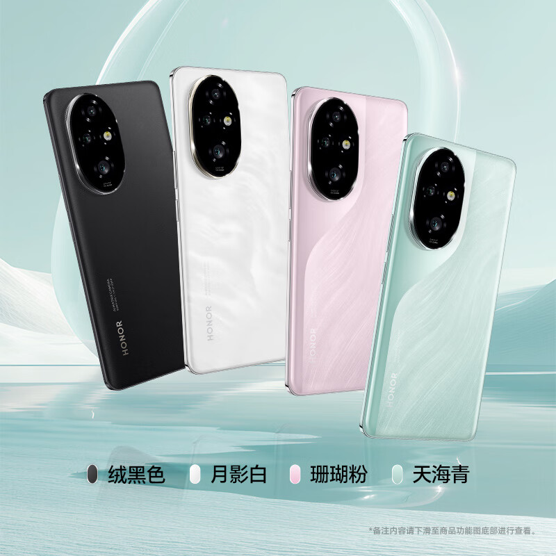 荣耀 200 Pro 同样提供天海青、珊瑚粉、月影白、绒黑色 4 款配色,采用 6.78 英寸 2700×1224 OLED 悬浮流线四曲屏,支持 120Hz 刷新率、3840Hz 高频 PWM 调光,局部峰值亮度达 4000nit,支持类自然光护眼、AI 助眠显示、自然色彩显示 2.0、360 度自适应调光技术,通过了德国莱茵 TÜV 无频闪认证,首发德国莱茵 TÜV 全局护眼 3.0 认证,支持雨水湿手触控。