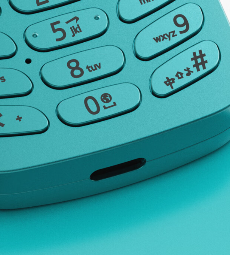 新机采用复古的九宫格功能按键,配有 1450mAh 电池,支持 2.75W Type-C 接口充电。