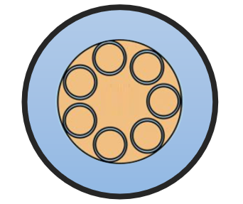 NANF 光纤的中间是充气纤芯。纤芯周围,是平行的玻璃管。每个玻璃管内,又嵌套(Nested)了另一根玻璃管。