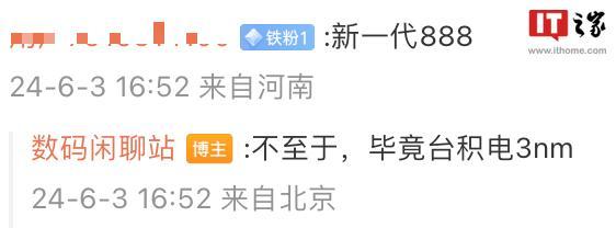 评论区有网友表示“新一代888”,博主回复称“不至于,毕竟台积电 3nm”。