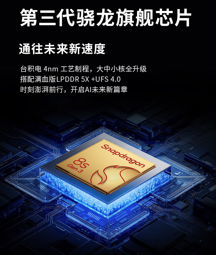 moto X50 Ultra 采用 6.7 英寸 2712*1220p 1.5K 144Hz LTPS OLED 显示屏,搭载骁龙 8s Gen 3 处理器,辅以最大 16GB+1TB 存储。