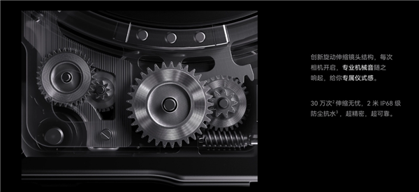 官方表示,伸缩镜头机械结构至少承受30万次伸缩,支持2米级的IP68防尘抗水。