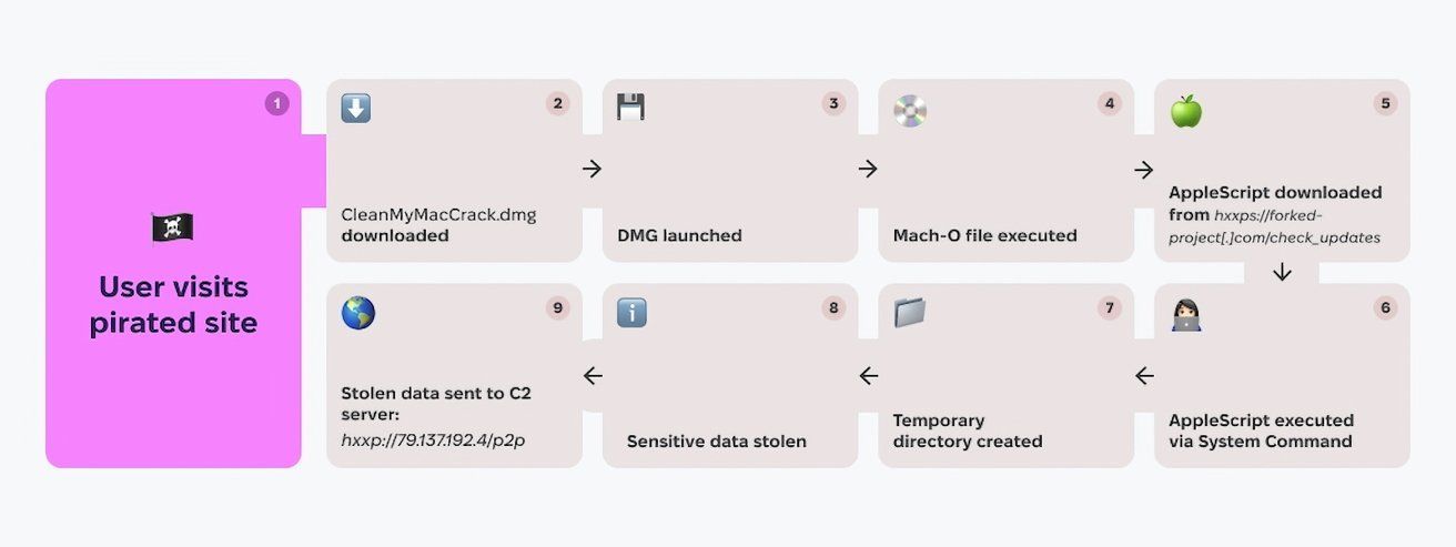 IT之家 6 月 6 日消息,网络安全公司 MacPaw 旗下 Moonlock Lab 于 6 月 4 日发布博文,表示近期有黑客通过 macOS 破解版 CleanMyMac 或 Photoshop 等主流应用,分发新型 Mac 恶意软件。