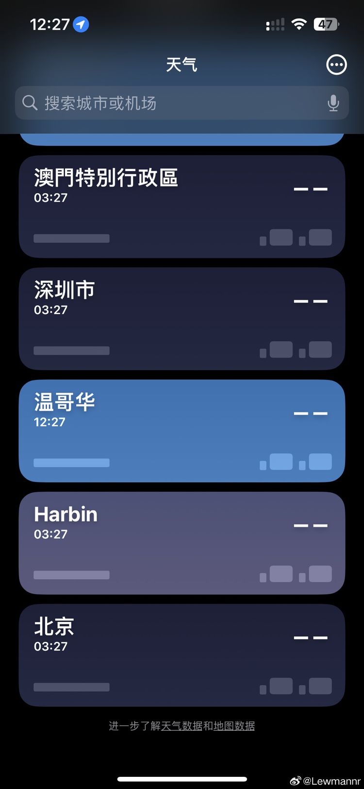 IT之家查询微博,国内不少苹果用户均反馈遇到这个问题。而本次受影响的不仅仅局限于国内,全球苹果用户都受到天气服务中断影响。