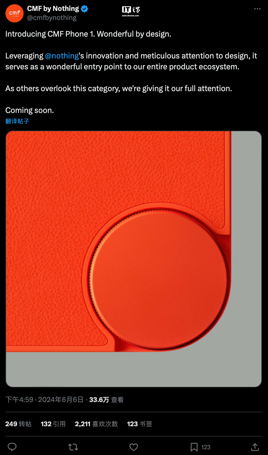 文章来源于互联网:IT之家-机身配备“神秘旋钮”,Nothing 子品牌 CMF Phone(1)手机官宣