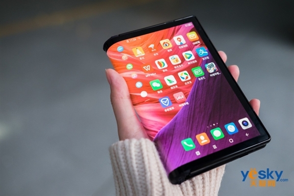 三星在2019年2月份的Galaxy Unpacked活动上,发布了其首款折叠屏手机—三星Galaxy Fold。它采用了与柔宇不同的内折设计,展开后是一块7.3英寸的柔性大屏,可以在屏幕上平铺运行三个应用程序,同时进行聊天、追剧和浏览网页。