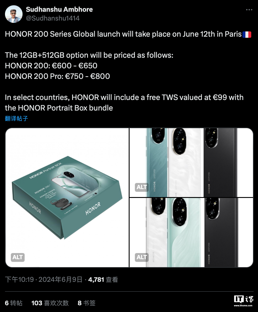 文章来源于互联网:IT之家-荣耀 200 / Pro 手机海外定价曝光,起售价 600 欧元约国内 1.7 倍