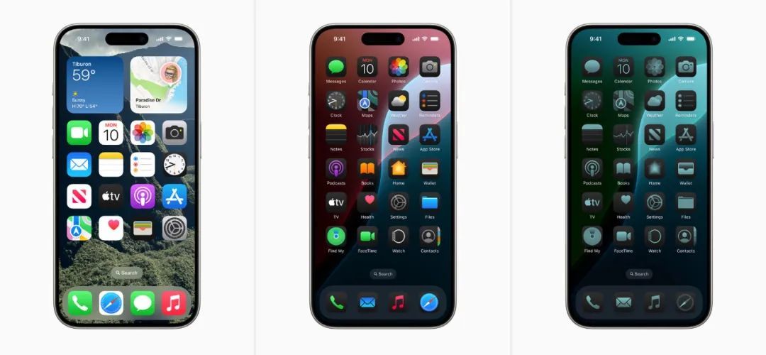 同时 iOS18 也进一步开放自定义 App 风格,新增暗色模式,并支持更改应用程序图标的颜色。