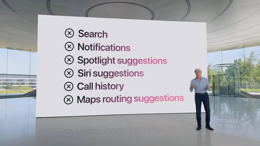 但问题随之而来,毕竟如果把生活中的所有细节都交到别人的 AI 云中进行储存和分析,就有点吓人了。因此,苹果认为应该做到「强大的智能与强大的隐私齐头并进」。