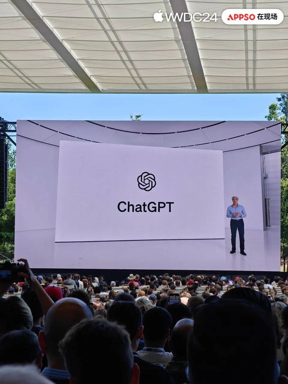 爱范儿和 APPSO 在苹果发布会现场也看到了 OpenAI CEO Sam Altman 的身影,不过,Altman 并未在预先录制好的发布会视频现身。