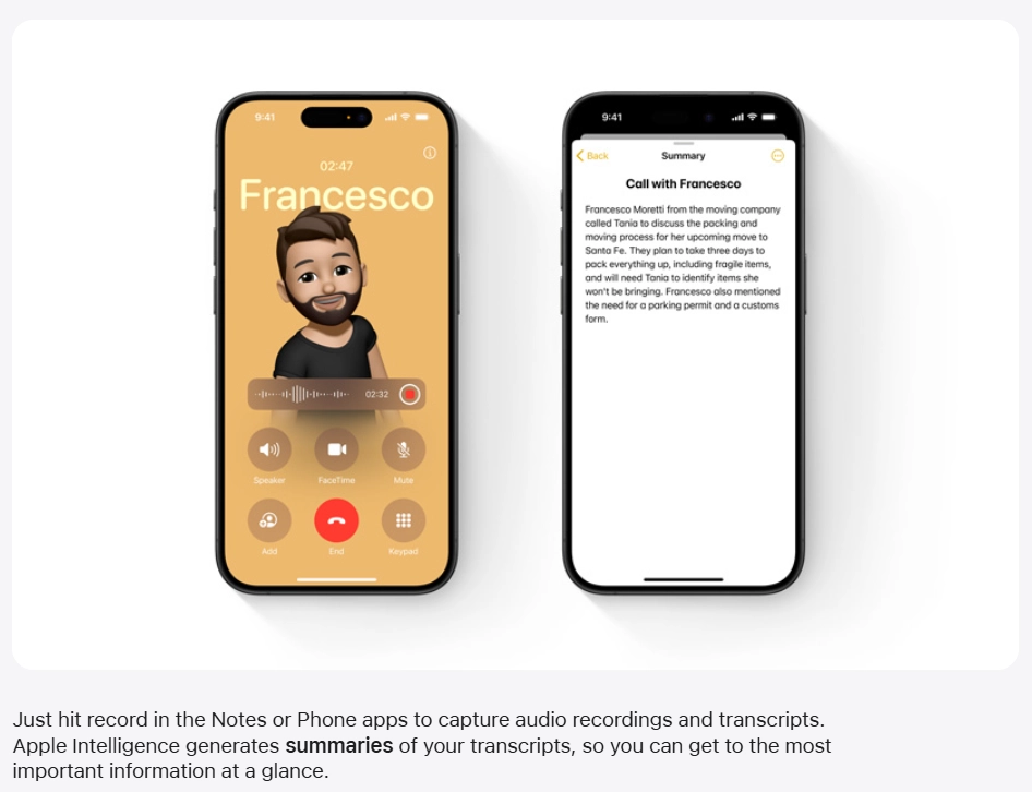 iPhone 终于自带通话录音:苹果 iOS 18 全新 AI 功能秋季上线,还能转录文字摘要