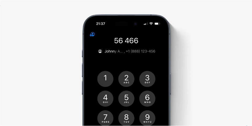 如上图所示,iOS 18 会按照用户搜索自动查找通讯录中的匹配项。比如要呼叫 Johnny,用户可以按 5 6 4 6 6(J O H N N),匹配人的姓名和电话号码将出现在屏幕顶部。点击姓名即可确认并发起呼叫。